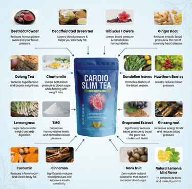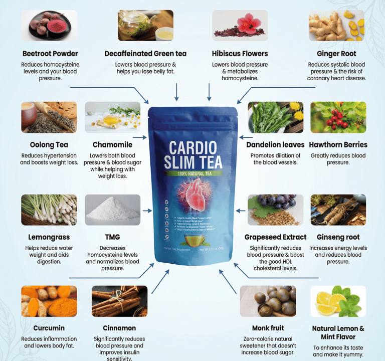 Cardio Slim Tea is a natural blend designed to support cardiovascular health while complementing your weight management routine.